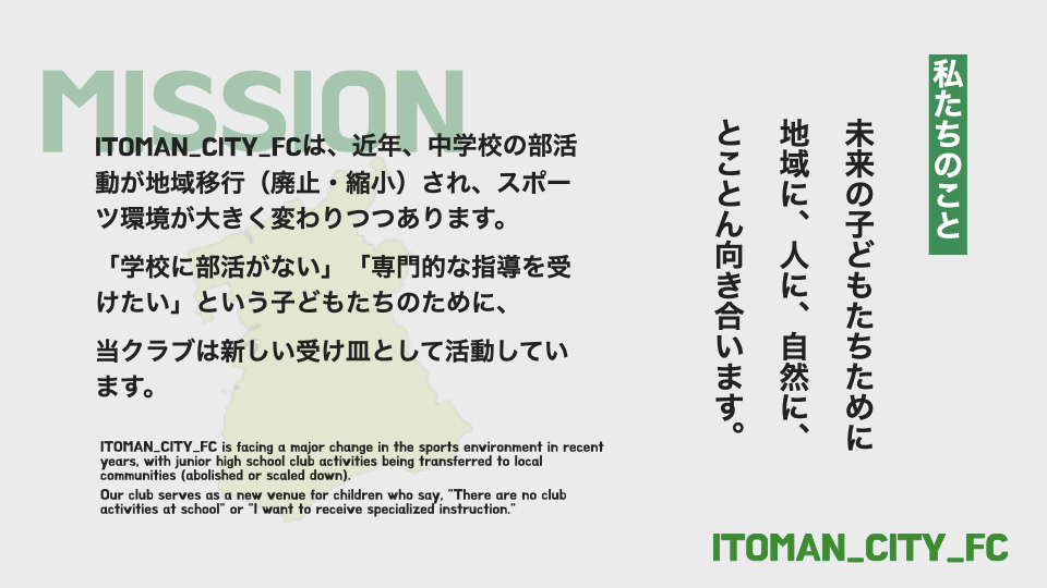 ITOMAN_CITY_FCの活動をご支援いただけるスポンサーを募集しております。糸満市及び周辺の企業様、個人様に向けた特典や企画などご案内させていただきます。ご興味のある方はこちらから